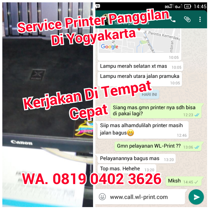 Kami juga melayani dan menerima jasa service printer panggilan kerjakan di tempat bila memungkinkan, jika proses reser printer hanya menggunakan software bisa kami kerjakan di tempat lokasi,beberapa seri printer memerlukan penanganan khusus sehingga harus di kerjakan di workshop WL-Print.